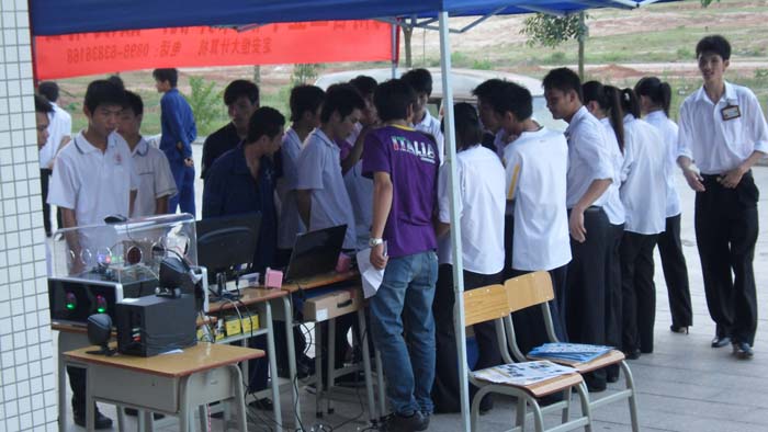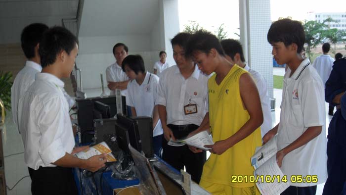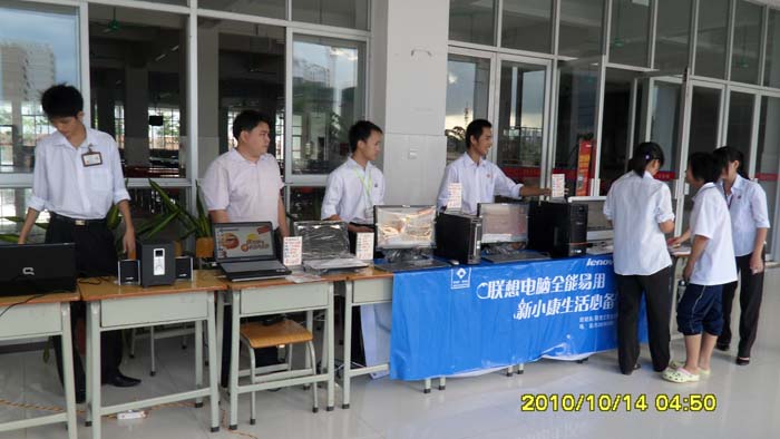 10月14、15日,在校团委的指导下,我校计算机协会与定安县两家较有实力的电脑公司展开合作,在塔岭校区食堂门口举行计算机产品展销活动。 展销会上展出了不同类型和品牌的计算机,包括笔记本、一体机、品牌机与组装机等。专业讲解人员向同学们详细介绍了计算机的主要硬件设备、各自的功能以及怎样实现具体功能、各种类型计算机的研发历史以及现阶段流行的最新版本等等,并通过“实物观察”、“现场讲解”的方式增加同学们关于计算机硬件方面的知识。大家都表现出极大的兴趣,将展示现场围得水泄不通。 本次活动让同学们更为具体的了解到了现代计算机主流产品,激发了同学们对电脑知识的学习兴趣,扩展了同学们的知识面,对同学们的全面发展产生了积极的影响。(校团委黄艳 供稿)